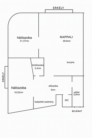 Két külön nyíló hálószoba, köztük egy egyedi, félköríves sarokszoba